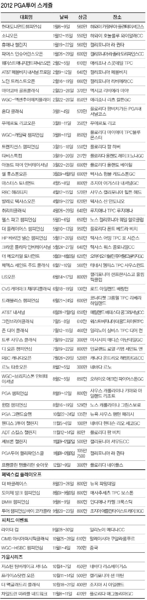 ◆2012년 미국프로골프(PGA) 투어 스케줄