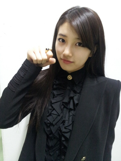 사진 속 수지는 검은색 블라우스에 검은 재킷 등 올 블랙의상을 입고 청순하면서도 도도한 모습을 뽐내고 있다.
