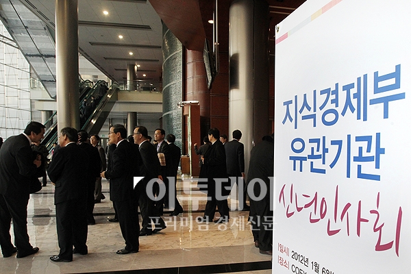 지식경제부 유관기관 신년인사회가 열린 6일 오전 삼성동 코엑스에서 참석자들이 인사를 나누고 있다.