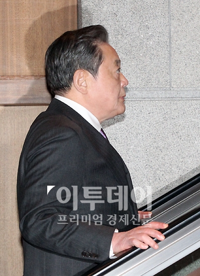 이건희 삼성전자 회장이 9일 오후 장충동 신라호텔에서 열린 ‘71세 생일 겸 삼성사장단 신년만찬’에 참석하고 있다.