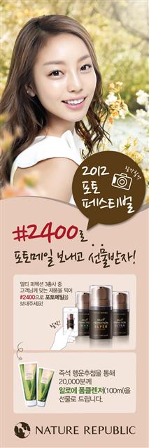 ‘2012 Wish 페스티벌’은 오는 13일부터 ‘포토 페스티벌’과 ‘소원성취 추천 릴레이’로 나눠 진행된다. ‘포토 페스티벌’은 매장에서 TV CF 방영 제품인 ‘멀티 퍼펙션 크림’ 3종을 촬영해 #2400으로 문자를 보내면 된다. 현장에서 즉시 추첨해 2만 명에게 인기 제품 ‘프레시 팜 알로에 폼 클렌저’(100ml)를 선물한다. ‘소원성취 추천 릴레이’는 자사 온라인 쇼핑몰의 이벤트 코너에 새해 소원을 적어 응모하면 가장 많은 추천을 받은 고객 17명에게 소원성취금으로 쇼핑몰 적립금 총 450만원을 증정한다.