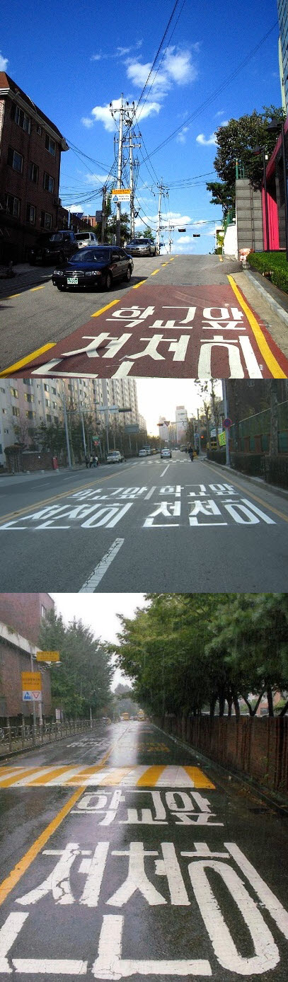 최근 한 온라인 커뮤니티 게시판에 학생」들이 지각하는 이유는 “학교앞에 도로 노면에 ‘학교 앞 천천히’라는 안내 글 때문에 학생들이 교통법규를 준수하기 위함이니까 선생님들도 이해해줘야 한다”고 재치 있게 설명했다.