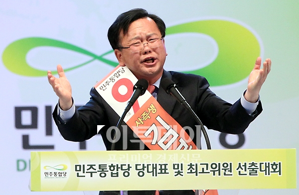 민주통합당 김부겸 당대표 및 최고위원 후보가 15일 오후 경기도 고양시 일산 킨텍스에서 열린 ‘민주통합당 당대표 및 최고위원 선출대회’에서 정견발표를 하고 있다.