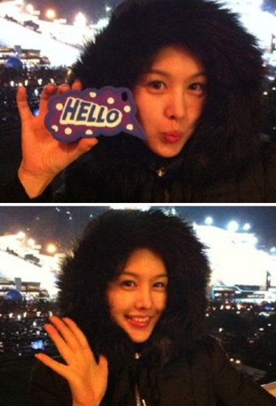 박은지는 15일 자신의 트위터에 "가족들과 홍천 비발디파크 왔어요. 눈이 너무 예쁘다. 이따 보드 타러 가야지"란 글과 함께 사진을 공개했다.