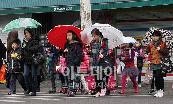 [포토]봄비가 반기는 새학기 첫 등굣길