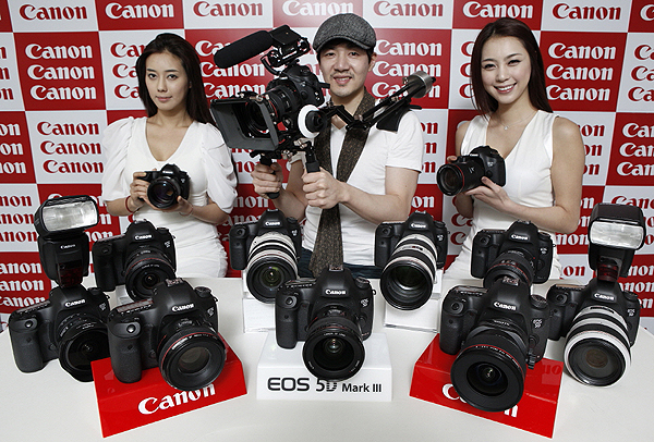 캐논코리아컨슈머이미징은 2일 4년의 공백을 깨고 자사의 DSLR 카메라 'EOS 5D Mark2' 후속기 'EOS 5D Mark3'를 발표했다. 2,230만 화소의 풀프레임 센서를 갖춘 'EOS 5D Mark3'는 새로운 영상 엔진 'DIGIC 5+'를 탑재해 61포인트의 AF 측거점, 최고 약 6매의 연사 속도 등 전작보다 성능이 비약적으로 향상됐다. 'EOS 5D Mark3'는 스틸 사진 촬영 성능 뿐아니라 전작에서 크게 인기를 끌었던 동영상 촬영 기능도 많은 부분에서 개선된 환경을 제공한다.