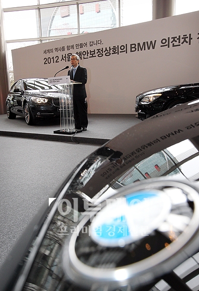 조희용 핵안보정상회의 준비기획단 부단장이 5일 오전 서울 삼성동 코엑스에서 열린 2012 서울 핵안보정상회의 BMW 의전차 전달식에서 인사말을 하고 있다.
