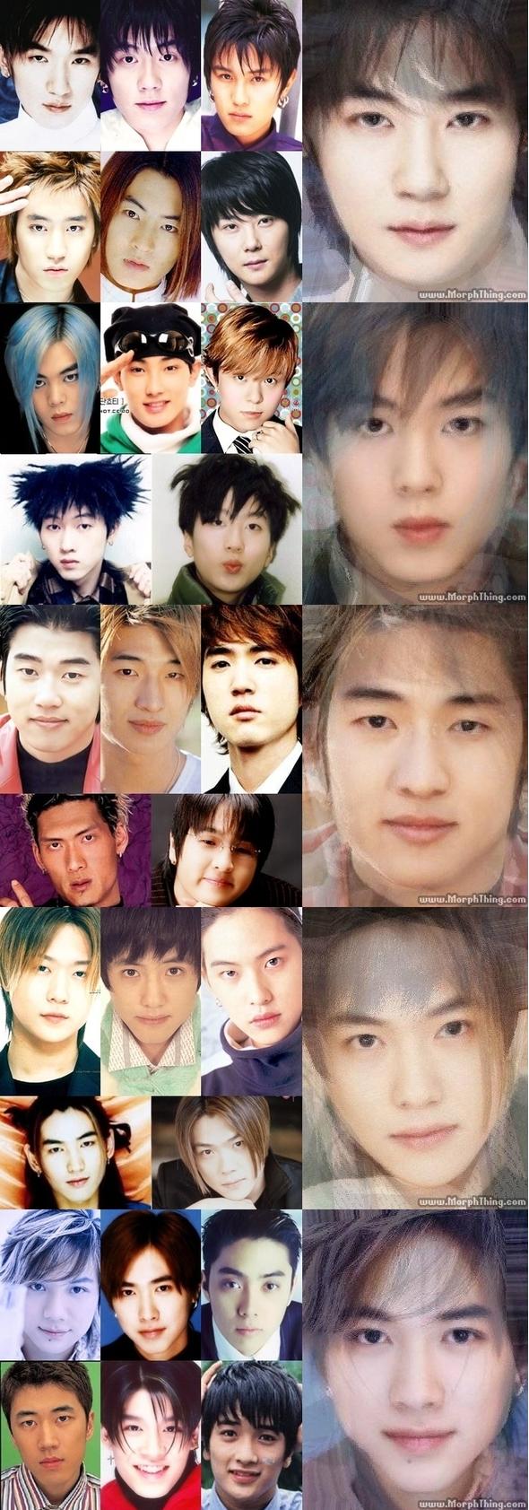 해당 게시물은 90년대 중반부터 2000년대 초중반까지 활약하던 1세대 아이돌 그룹 멤버들의 얼굴사진을 모아 놨다. 한켠에는 이들의 얼굴을 조합해 각 그룹의 평균 얼굴사진을 게재했다.