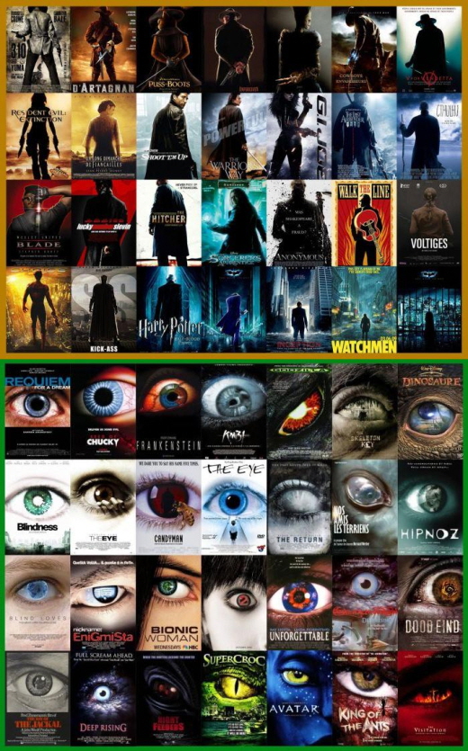 사진 속 영화포스터는 각각 다른 영화들로 묶여 있지만 포스터 속 사진 혹은 그림은 너무 똑같은 모습을 하고 있다.