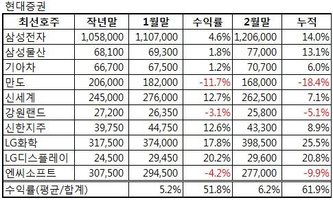 현대증권, 올 유망주 2월 누적수익률