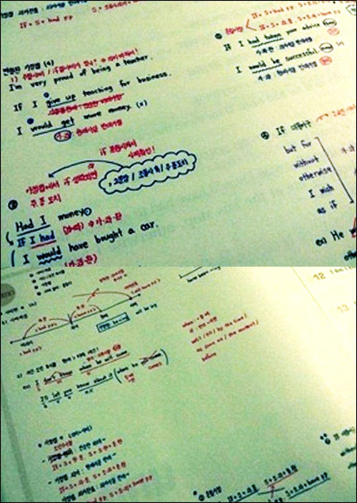 공개된 사진에는 정성들여 공부 내용을 잘 정리해 놓은 영어 과목의 필기내용이 담겨 있다.
