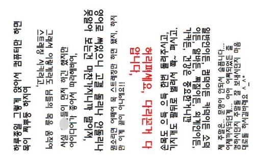 사진 속에는 90도씩 회전시킨 두 세줄짜리 문구들이 10여개 정도 담겨 있다.