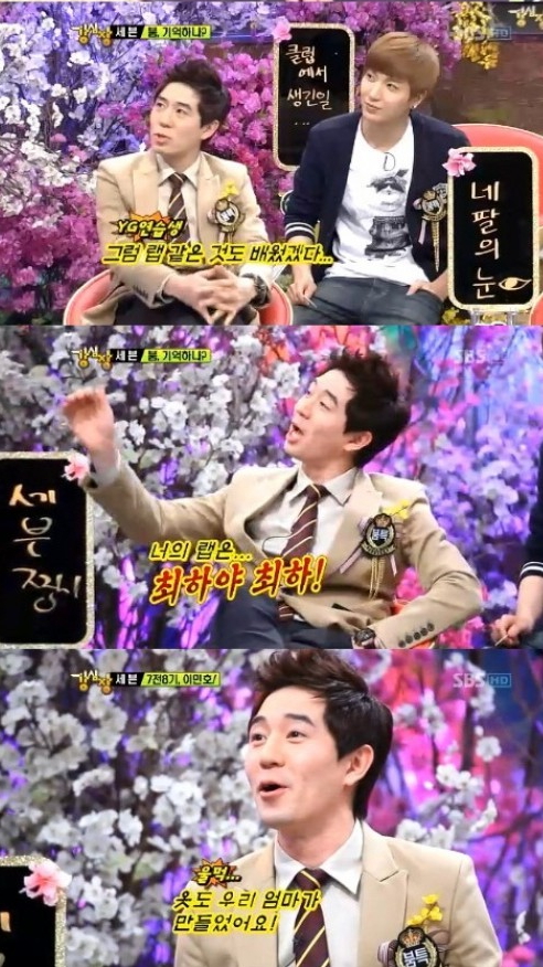 이어 두 사람은 당시 상황을 재연해 눈길을 끌었다. 출연자들이 붐에게 망언을 했다고 타박하자 붐은 "당시 대형기획사 YG의 연습생이었던 세븐과 JYP 연습생 비가 부러웠다"라고 전했다.