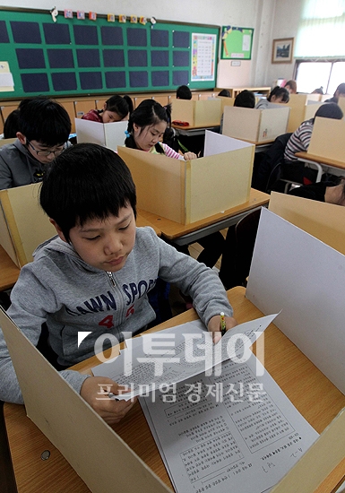 [포토]진단평가 보는 초등학생들