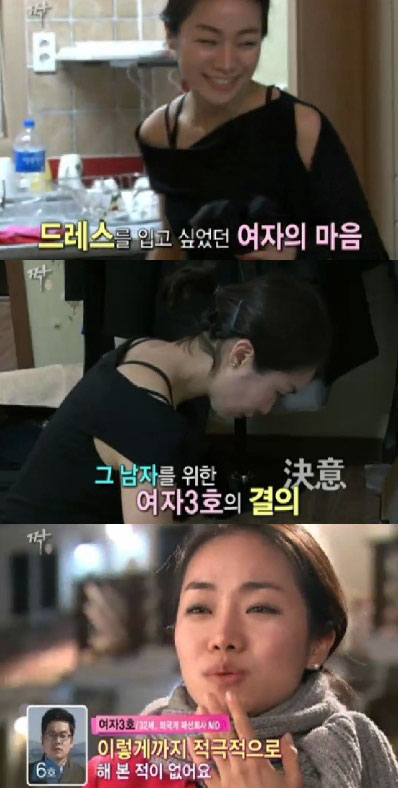 특히 이날 방송에서 여자 3호는 자신의 매력을 펼치기 위해 다소 노출이 있는 파격적인 검은 드레스를 입으며 눈길을 끌었다.