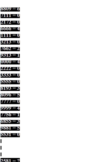 게시된 사진에는 8809=6, 6666=4, 8096=5, 0000=4, 7777=0, 5531=0과 같은 공식이 쭉 나열되어 있다가 마지막에 2581=? 이라는 문제가 주어진다. 얼핏 보면 아무 의미없는 숫자들처럼 보이기까지 한다.