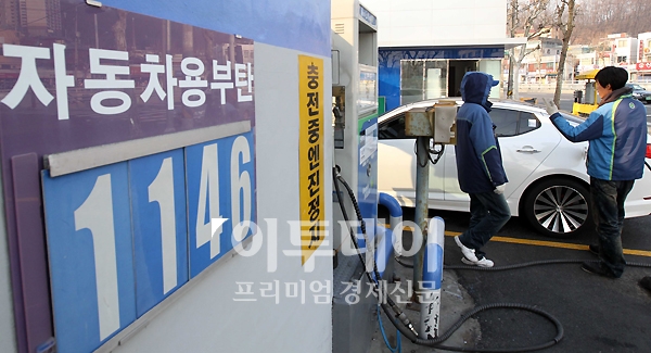 주로 가정 난방용이나 택시 등 차량 연료로 쓰이는 LPG 가격이 국제 유가 상승으로 사상 최고가를 경신하고 있다. 13일 신림동의 LPG 충전소 가격 안내판에 충전가격이 1146원을 나타내고 있다.