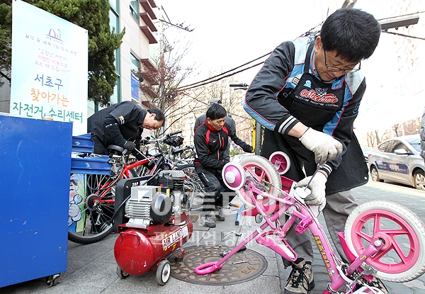 [포토]서초구 '찾아가는 자전거 수리센터'