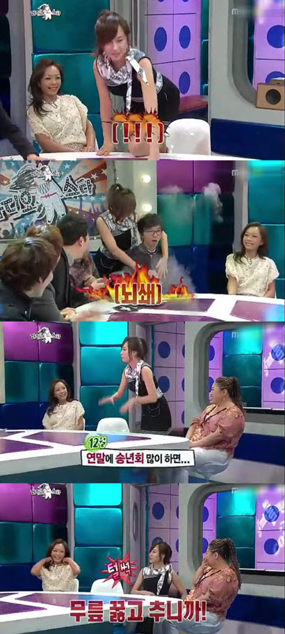 임성민은 "12월이면 연말 모임이 많은데, 항상 무릎으로 춤을 췄다"며 "무릎이 늘 시커멓게 변해있었다. 무릎이 안 좋다"고 말해 웃음을 자아냈다.