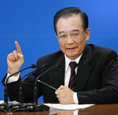 원자바오 총리가 14일(현지시간) 베이징 인민대회당에서 전국인민대표대회 폐막식을 마치고 기자회견을 갖고 있다. 그는 이날 정치개혁에 실패한다면 문화혁명과 같은 역사적 비극이 되풀이될 수 있다고 경고했다.