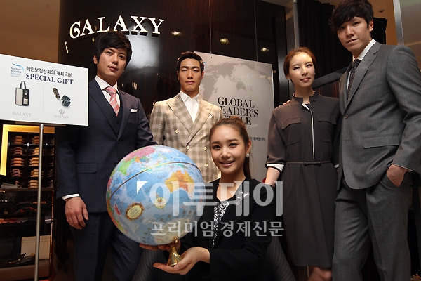 제일모직 갤럭시가 15일 오전 신세계백화점 본점에서 2012 서울 핵안보정상회의의 성공적 개최를 기념해 ‘갤럭시 2012 프레지던트 라인’을 출시했다. 갤럭시는 ‘2012 프레지던트 라인’을 통해 리더들이 상황별로 입어야 하는 다양한 스타일 연출법을 제안할 계획이다. 3월 31일까지 100만원 이상 구매고객에게 넥타이와 여권케이스 등으로 구성된 파우치 4종 세트를 증정하는 이벤트도 진행한다.
