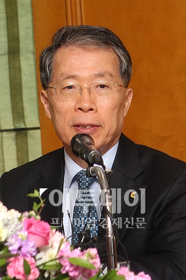 윤용로 외환은행장이 15일 오전 서울 중구 명동 은행연합회에서 열린 취임 첫 기자간담회에 참석해 인사말을 하고 있다.