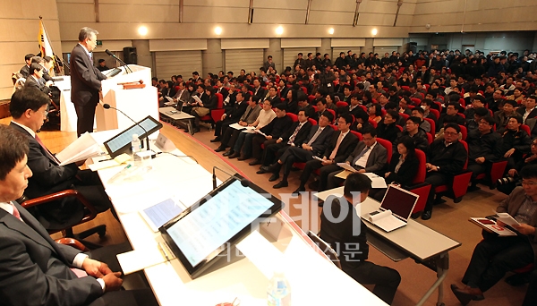 KT 제30기 정기주주총회가 16일 오전 서초구 우면동 KT연구개발센터에서 열렸다. 이석채 KT 회장이 의사진행을 하고 있다.