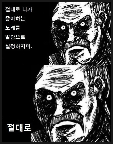 이 게시물에는 알람 설정할 때 "절대로 니가 좋아하는 노래를 알람으로 설정하지마. 절대로"라는 글이 남겨져 있다.