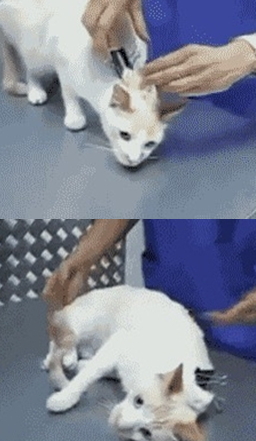 동영상에는 고양이를 얌전하게 진정시키는 방법으로 집게를 사용하고 있다. 고양이의 목덜미를 큰 집게로 집기만 하면 고양이는 움직이지 않고 바로 얌전해진다. 그러나 집게를 빼자 고양이는 곧바로 움직이기 시작했다.