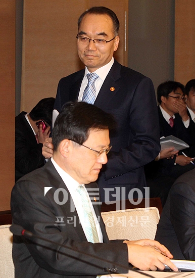 박재완 기획재정부 장관이 21일 오전 남대문로 대한상공회의소에서 열린 위기관리대책회의에 참석하고 있다.