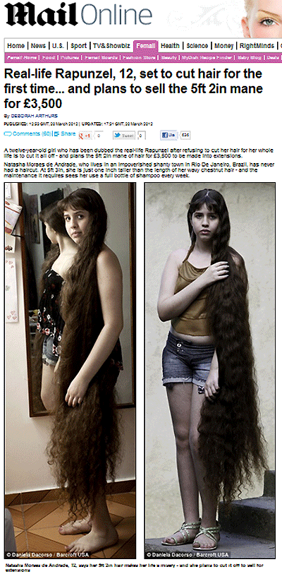 이 소녀는 태어난 이후로 머리를 자르지 않고 12년간 길러왔다. 이 현대판 라푼젤 소녀는 긴 머리로 인해 일주일에 한 번 샴푸를 구입해야 하며 머리 손질도 한시간 반이나 걸린다.