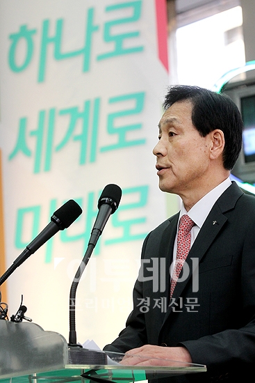 [포토]취임사하는 김정태 신임 하나금융지주 회장