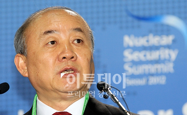 류우익 통일부장관이 2012서울 핵안보정상회의 이틀째인 27일 오후 서울 삼성동 코엑스 국제미디어센터에서 통일정책방향에 대해 브리핑하고 있다.