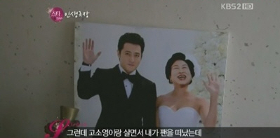 이어 "내가 하도 팬이라고 하니까 누가 원을 풀어주겠다고 액자를 만들어줬다"며 집 귀퉁이에 있던 장동건과의 합성 결혼 사진에 대해 설명했다.