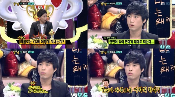 27일 방송된 SBS ‘강심장’에는 YG 패밀리가 출연해 시청자들의 뜨거운 관심을 받은 가운데 이날 타블로가 양현석과 얽힌 에피소드를 전했다.