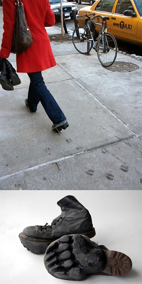 이같은 '무서운 발자국 신발'을 제작한 라세르는 낯선 이미지를 이끌어내는 작업으로 널리 알려져 있다.