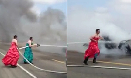 동영상 전문 사이트인 유튜브에는 최근 파티 드레스를 입은 채 화제를 진화하고 있는 소방관들의 동영상이 게재됐다.