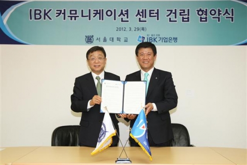 이날 기업은행은 서울대와 관련 협약을 맺고 새로 지어질 건물에 기업은행 영문 약자인 'IBK'를 영구 사용하기로 했다.