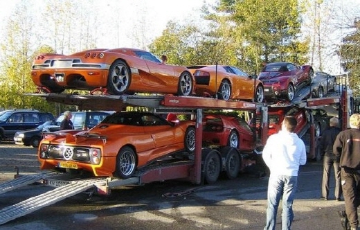 공개된 사진 속에는 한 트레일러 위에 이름만 들어도 '억' 소리가 나는 슈퍼카들이 즐비하게 실려있다.