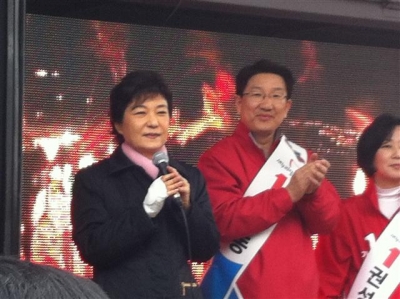박근혜 새누리당 중앙선거대책위원장은 2일 강원도 속초에서 정문헌(속초·고성·양양) 후보와 권성동(강릉) 후보의 차량유세를 연이어 지원했다.