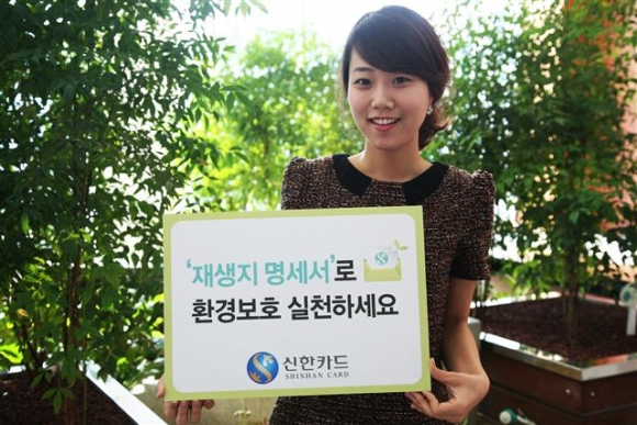 신한카드는 환경 보호를 위해 재생지 명세서를 도입한다고 4일 밝혔다. 재생지 명세서는 4월부터 순차적으로 도입해 7월에는 모든 고객에게 발송될 예정이다.