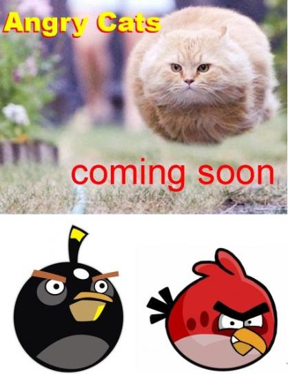 해당 게시물은 인기 캐릭터 앵그리 버드를 본따 패러디한 화난 고양이 모습을 담고 있다. 앵그리 캣츠는 앵그리 버드와 비슷하게 몸 전체가 동그랗다.