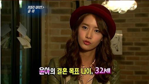 이날 방송에서 급작스러운 결혼 계획 질문을 받은 윤아는 잠시 당황하더니 “32살 안에는 갔으면 좋겠다”고 솔직한 답변을 했다.