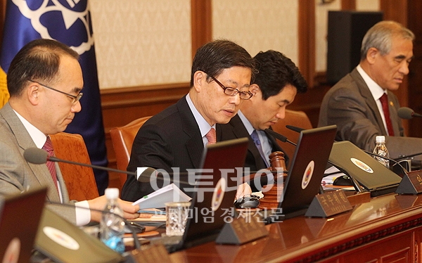 김황식 국무총리가 10일 오전 서울 세종로 정부중앙청사에서 국무회의 시작을 알리는 의사봉을 두드리고있다.