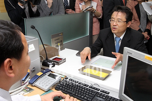권혁세 금융감독원장이 24일 오전 KB국민은행 숭례문점에서 불법사금융신고자에 대한 금융지원 실태점검 현장방문을 하고 있다.