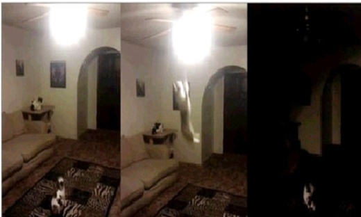 영상 속 고양이는 천장을 향해 점프를 시도한다. 놀라운 점프력으로 전등에 달린 줄을 잡아당겨 전원을 꺼 눈길을 끈다.