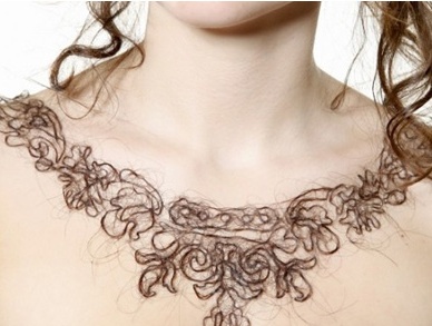 제목 속 '뜨개질'은 실제 뜨개질이 아닌 머리카락을 이용해 다양한 문양과 목걸이 등을 만들어 낸 것이다. 특히 영국 캠브리지 대학교의 한 학생이 만든 '머리카락 목걸이'는 5종류의 목걸이를 만드는데 꼬박 60시간을 작업한 것으로 알려져 놀라움을 선사했다.