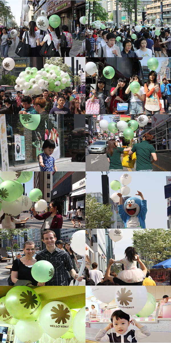 6일 오후 서울 강남대로에서는 이번 주에 있을 헬로비너스의 데뷔를 앞두고 일만여 개의 풍선을 시민들에게 배포하는 이벤트가 열렸다. 시민들은 남녀노소는 물론 국적까지 불문한 채 헬로비너스 응원에 동참했다. 너나 할 것 없이 앞다퉈 풍선을 받아가 준비한 풍선이 금세 동났다는 후문이다.
