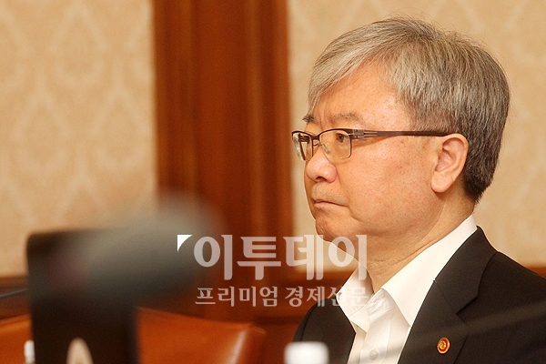 검찰의 저축은행 비리 3차 수사가 진행되면서 저축은행 임원진들의 횡령 등 온갖 의혹이 불거지고 있는 8일 오전 김석동 금융위원장(오른쪽)이 서울 세종로 정부중앙청사에서 열린 국무회의에 심각한 표정으로 참석하고 있다.