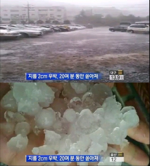 지난 8일 오후 4시께 대구 달성과 경북 고령군 등 영남 내륙지방에서 지름 2cm 안팎의 우박이 약 20분께 쏟아졌다.